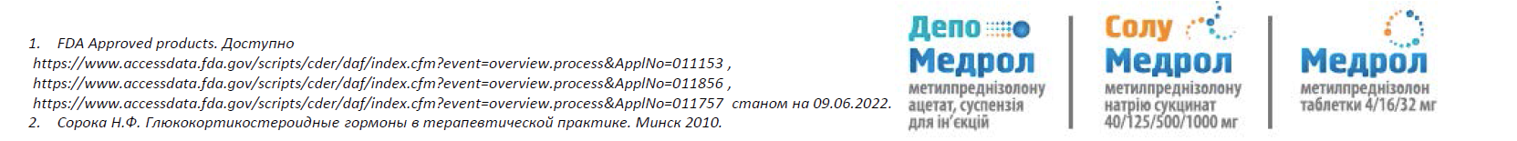 Серед зареєстрованих в Україні генеричних аналогів МЕДРОЛУ, СОЛУ-МЕДРОЛУ, ДЕПО-МЕДРОЛУ немає жодного з доведеною терапевтичною еквівалентністю, що відповідає вимогам FDA.3,4