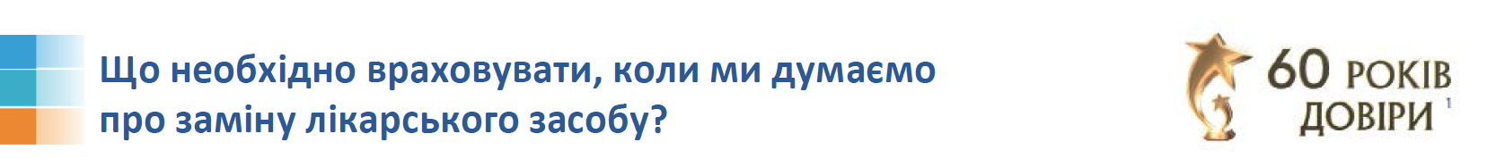Взаємозамінний препарат – лікарський препарат, який терапевтично еквівалентний препарату порівняння (еталонному препарату) і може використовуватися взаємозамінно з препаратом порівняння в клінічній практиці²